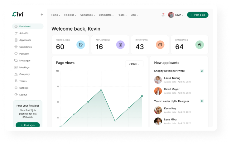 Civi theme provides a front-end dashboard for Candidate and Employers to manage their profiles, job listings, and applications...